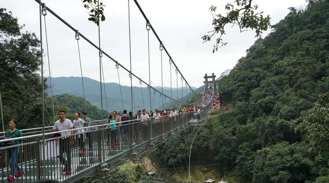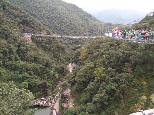 玻璃桥上,早已忘却登山时的疲惫,赶紧记录下难忘的一刻。