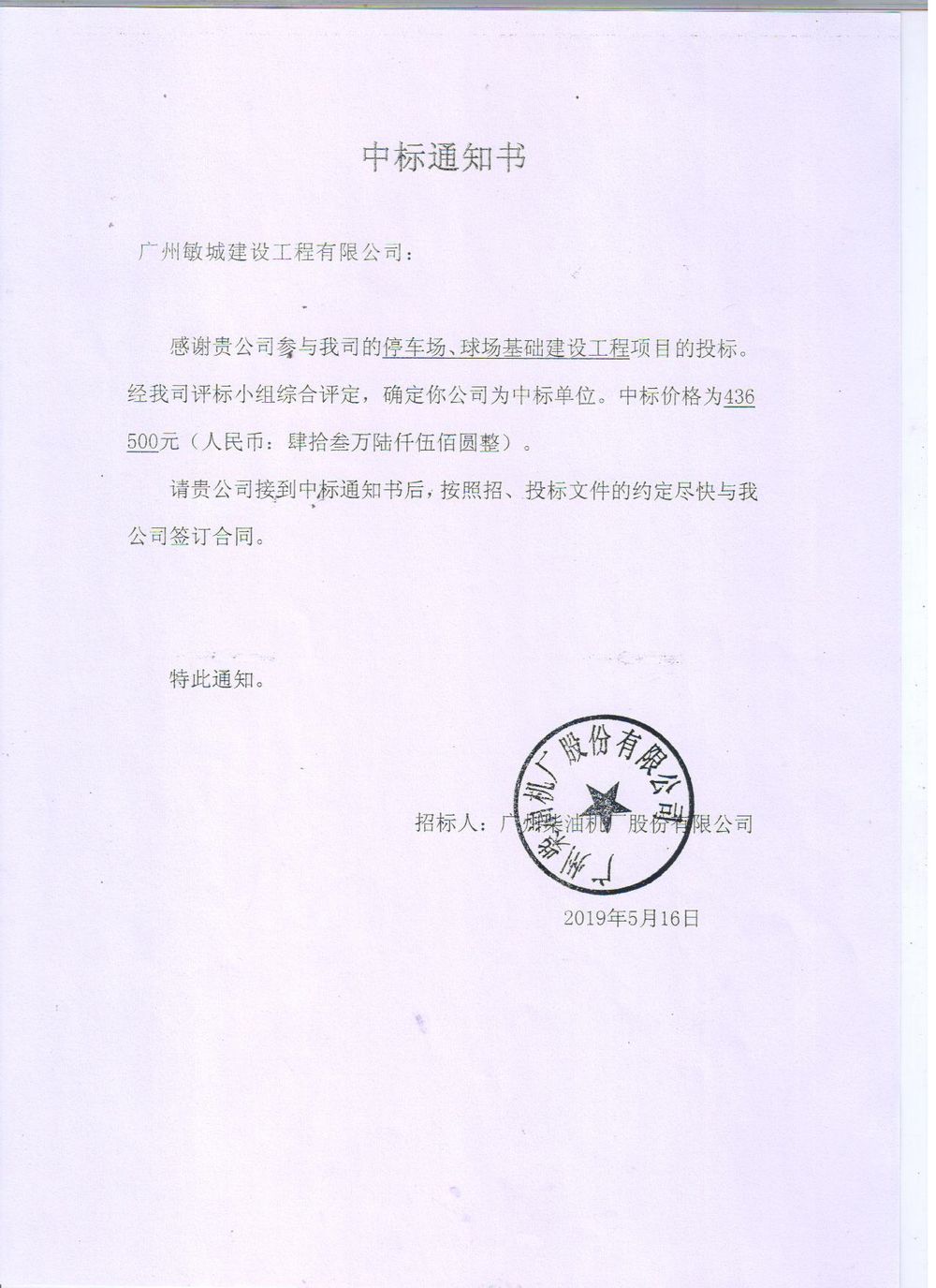 市柴篮球场、停车场基础建设项目中标公告